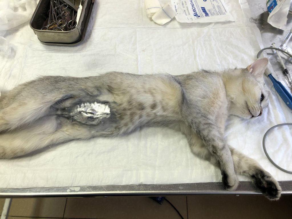 - Температура тела в наркотическом сне обычно понижена. Чтобы кошка не мерзла, нужно укрыть ее чем-то легким и теплым.