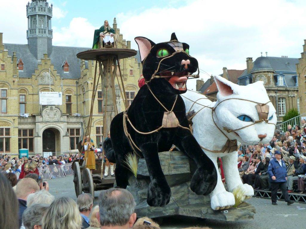 Бельгия. В этой стране дата, посвященная чествованию кошек, законодательно установлена в 1955 году, но отмечается он лишь один раз в 3 года во второе майское воскресенье. Когда-то кошек считали посланниками дьявола, поэтому их уничтожение символизировало прощение всех земных грехов. Сейчас на фестивале фигурки животных сбрасывают с колокольни, но для того, чтобы люди их поймали. Тому, кто сумеет удержать игрушечную кошку, будет сопутствовать удача.
