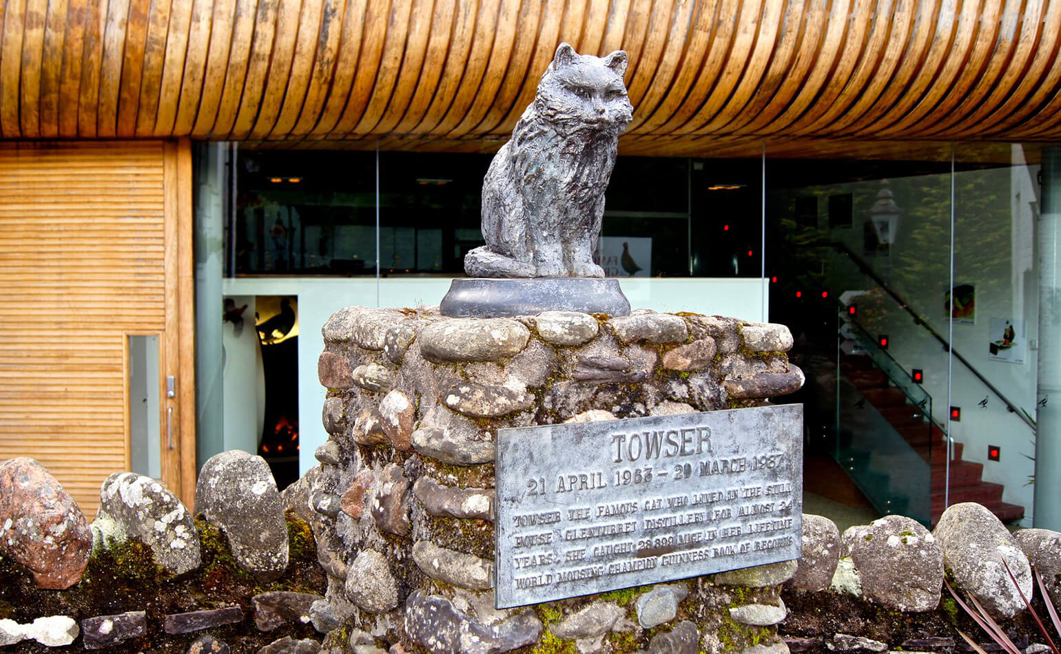 - Памятник в честь черепахового кота Towser в Шотландии. Легенда гласит, что за 20 лет своей кошачьей жизни это великолепный «воин» сразил напопал 28 899 мышей.