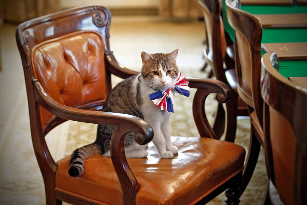 В Великобритании нанять кота на работу – обычное дело. Мыши любят грызть не только музейные ценности, но разные деловые бумаги также могут прийтись по вкусу. Так, в резиденции премьер-министра Великобритании вот уже 10 лет (юбилей отмечали 24 февраля 2021 г) служит главным мышеловом кот Ларри. За это время менялись премьеры, а Ларри бессменен.
