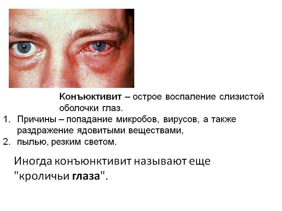 Конъюнктивит и кератоконъюнктивит – воспаление глаз. В первом случае поражается только конъюнктива, во втором – еще и роговица. Основные симптомы: