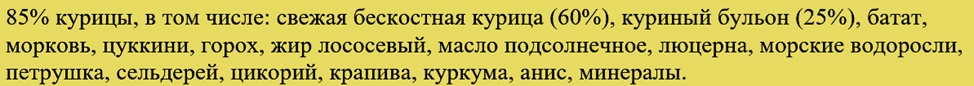Сравнивая составы на русском и английском языках, я обнаружила, что русские переводчики активно приукрашивают реальность. Поэтому корм мы будем оценивать через состав на английском языке, который я перевела дословно.