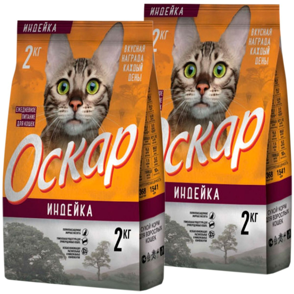 Полнорационный сухой корм российского производства «Оскар» рекомендован для кошек всех пород средней возрастной категории (1-6 лет). Высокое содержание мясных ингредиентов и низкий процент жира (всего 12%) делают его диетическим и идеально подходящим для кормления кастрированных/стерилизованных котов и кошек в целях профилактики мочекаменной болезни и других расстройств мочеполовой сферы. Основу продукта составляет птица (индейка) в виде мясной муки (35%). Сырой протеин содержится в количестве 31%, клетчатка — 2,5%. Корм реализуется в разных по объему пачках (до 10 кг).