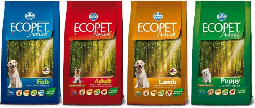 - Линия для собак премиум класса Farmina Ecopet Natural. По своему составу это полнорационный сбалансированный корм, который идеально подходит как для щенков, взрослых собак, так и для беременных и лактирующих сук. Гранулы разработаны таким образом, дабы угодить всем размерам животных от маленьких и средних до крупных. Корм также помогает при проблемах с пищеварением и аллергических заболеваниях.