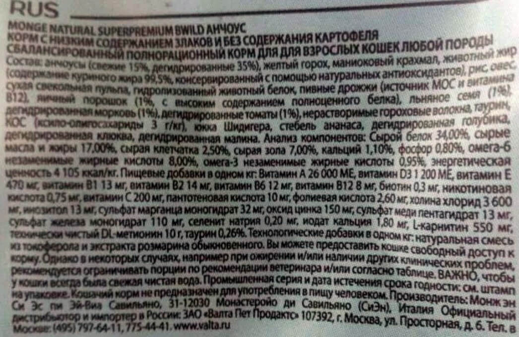 А вот чем отличаются корма Monge от остальных. Поверхностный обзор состава: