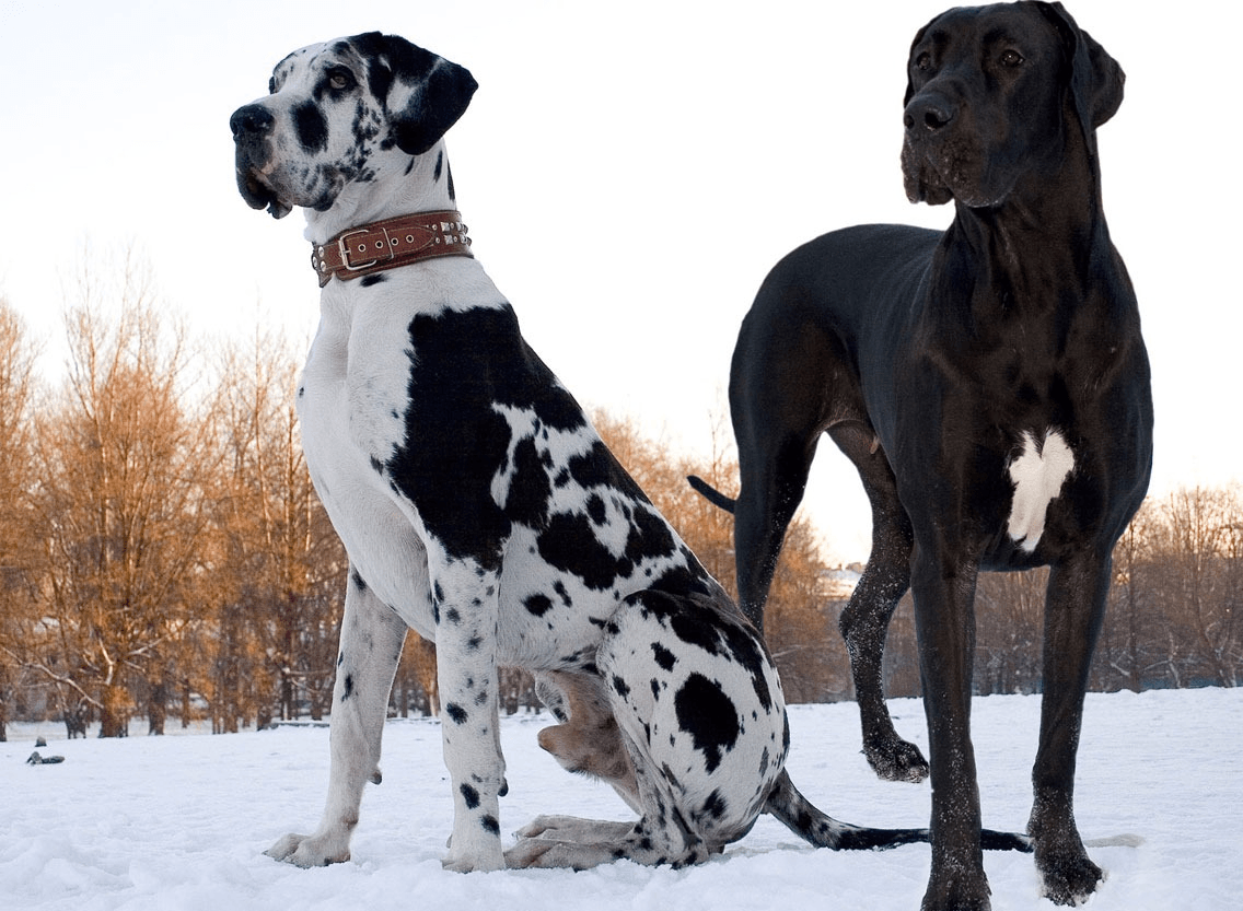 - Немецкий дог. Это не просто гиганты – представители данной породы считаются самыми высокорослыми в мире. Доги – удивительно элегантные собаки, один внешний вид которых вызывает восхищение и уважение. Они уверены в собственных силах, поэтому не реагируют на раздражители, недостойные внимания. Владельцы же уверены – добрее, ласковее, преданнее существа сложно найти. Конечно, как и другие крупные породы, немецкий дог нуждается в хорошем уходе и питании, поддержать здоровье больших собак гораздо труднее, чем более мелких.
