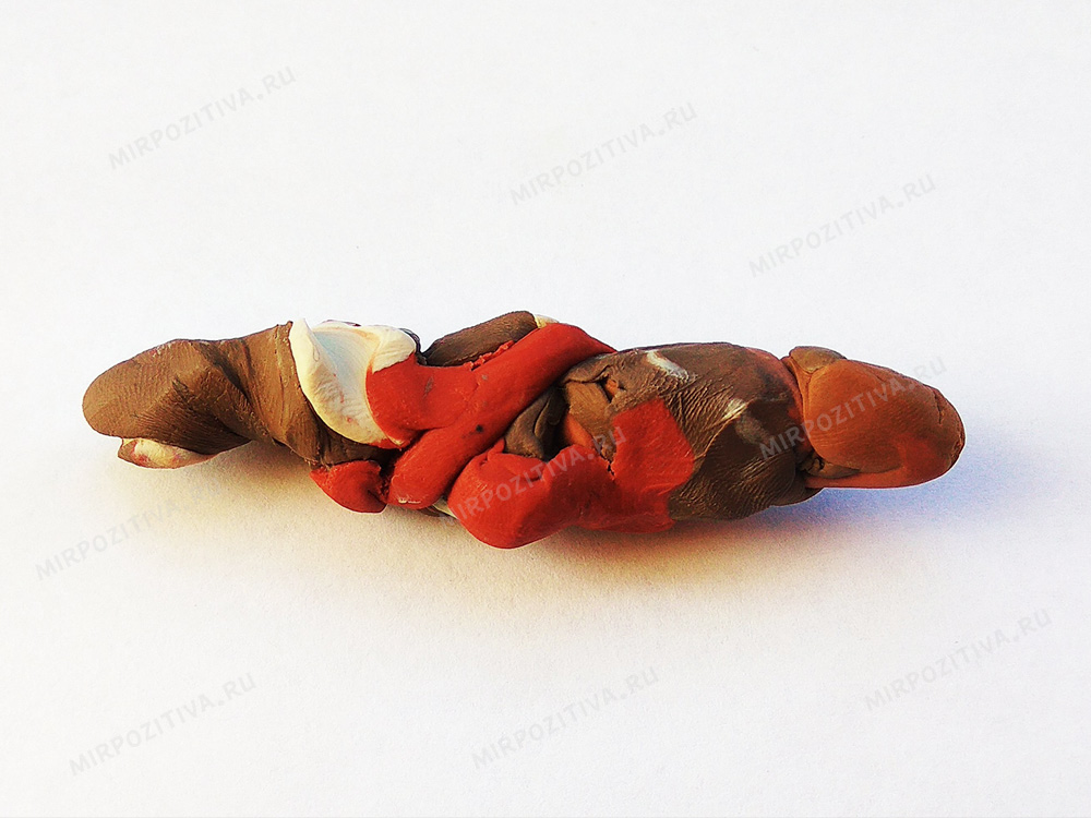 - Сформировать овальное туловище и закрепить на него голову при помощи спички или зубочистки.
