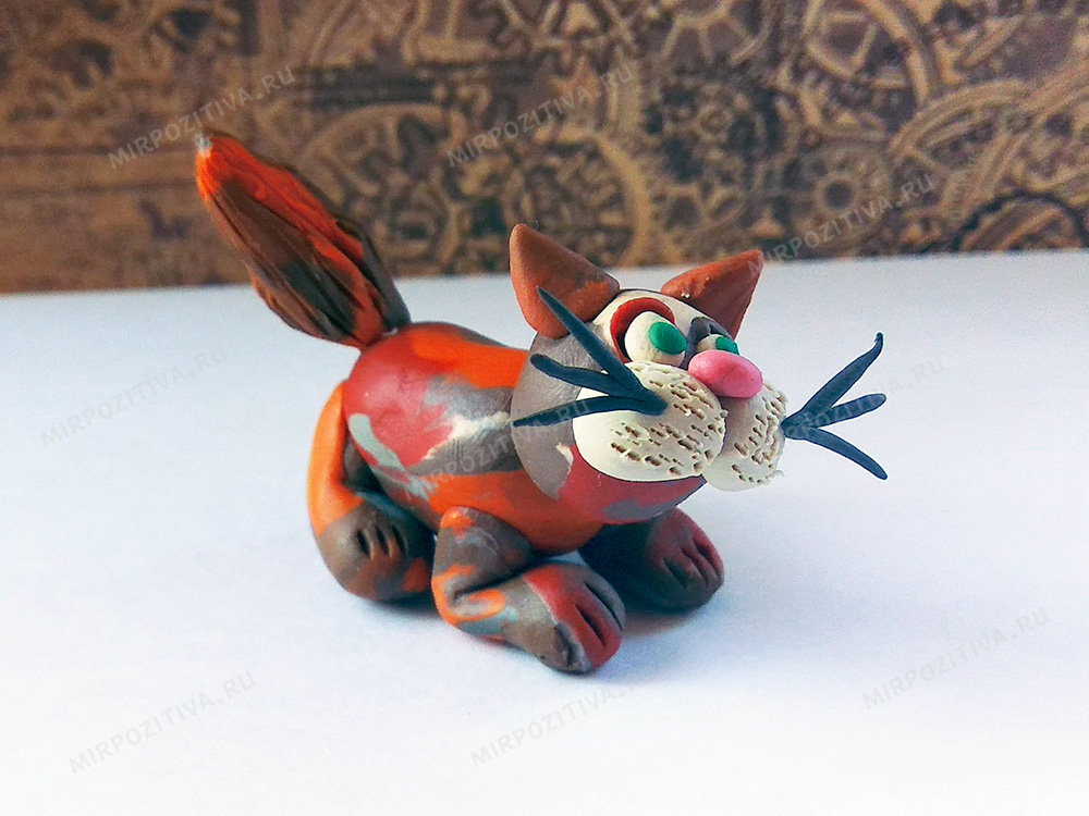 Очаровательная кошка из пластилина, которую понравится делать девочкам.