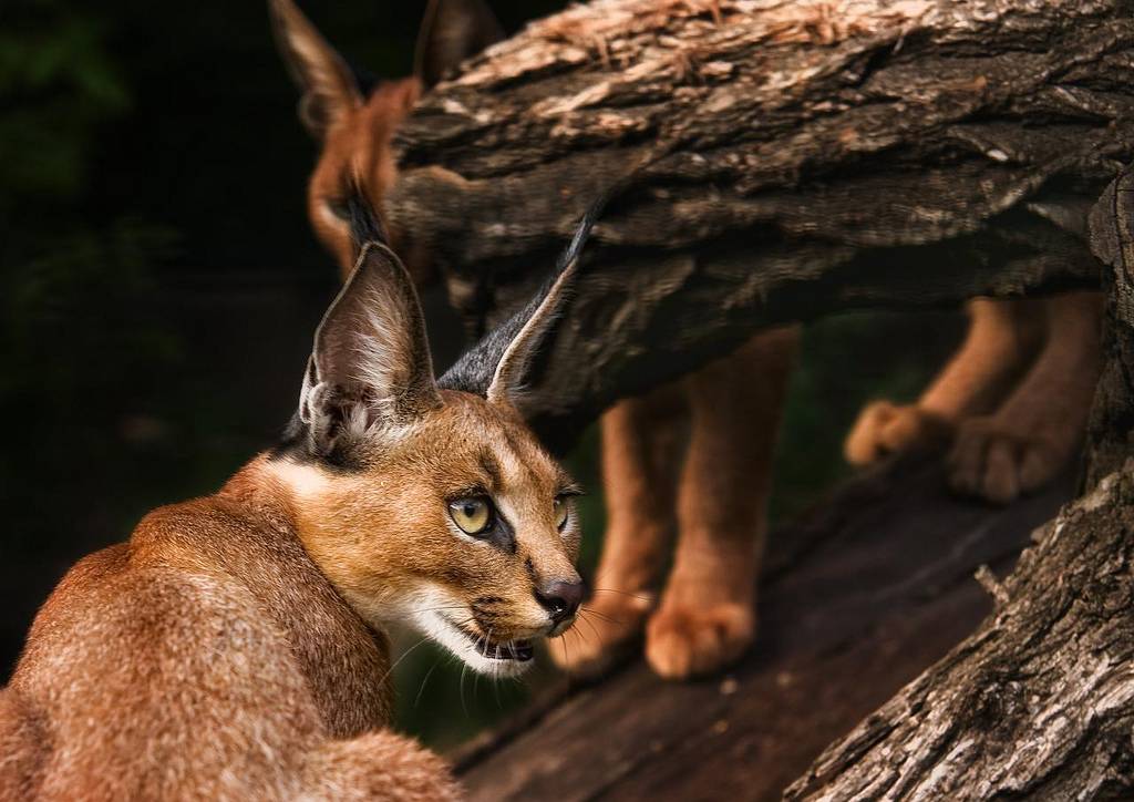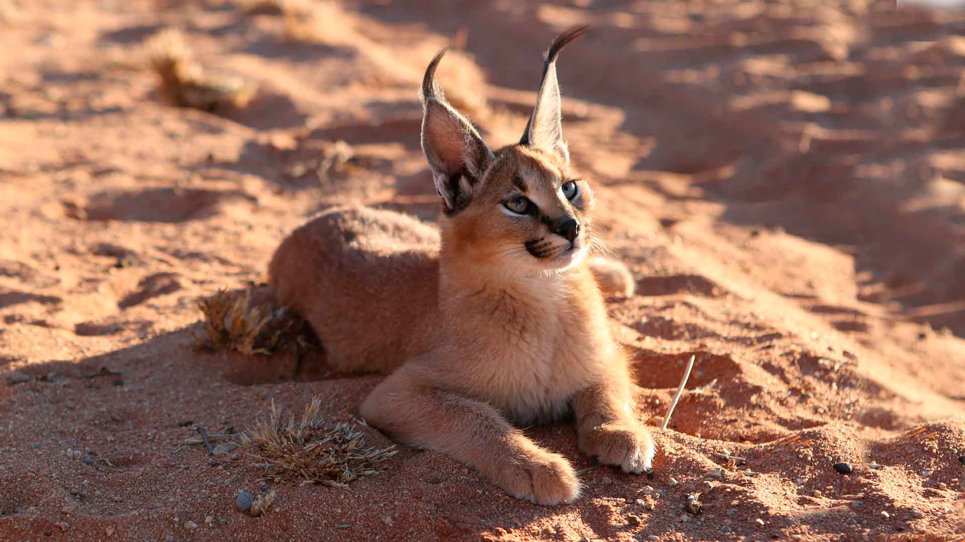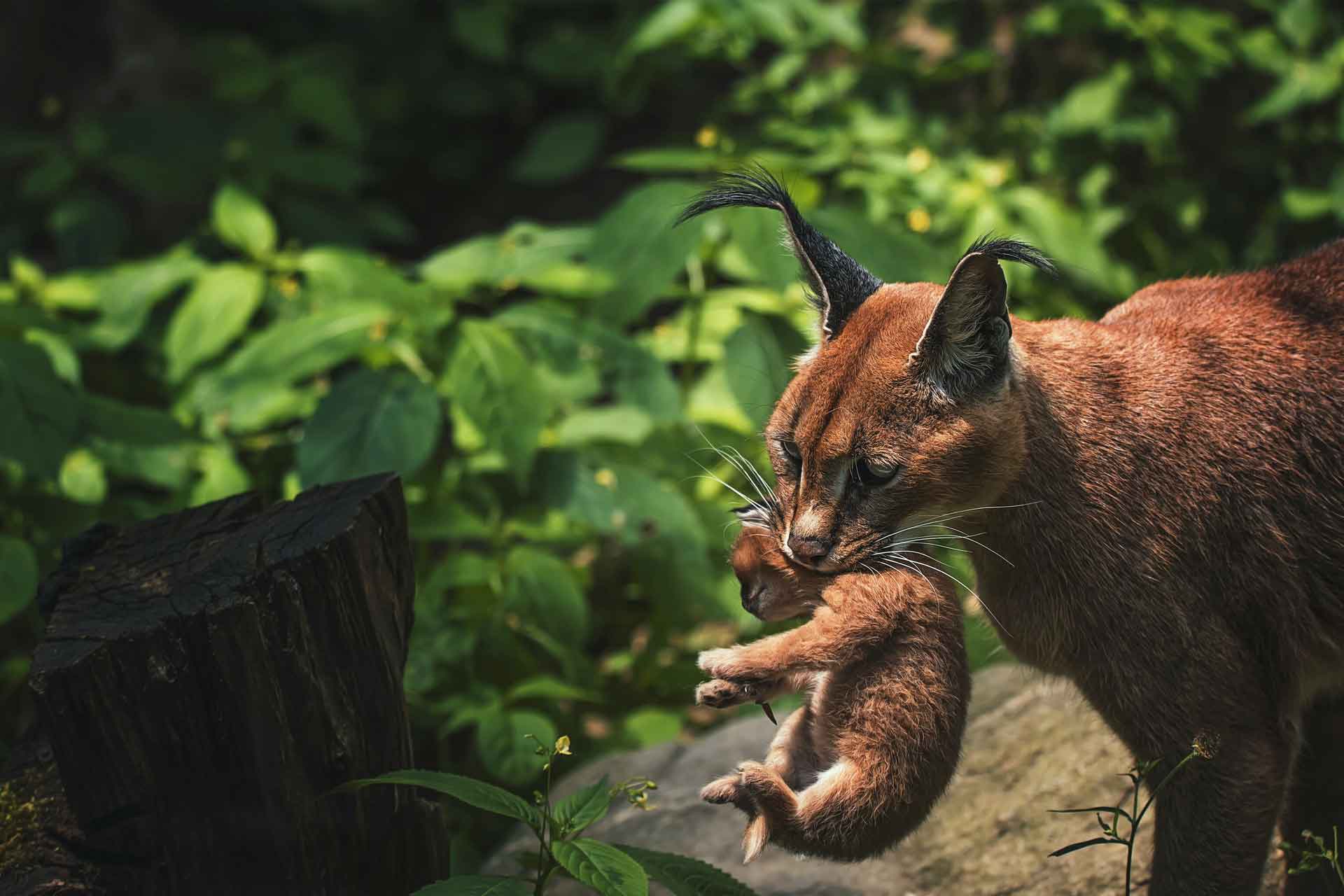 Детеныш каракала, обычно их двое, изредка до четырех, после окота остается с матерью до месяца и путешествует с ней, чтобы выжить среди других хищников, питаясь только молоком.