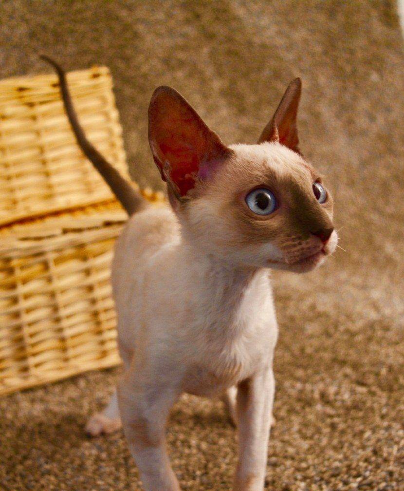 1. Окрас представителей относительно молодой породы отличается абсоютным разнообразием — это касается и главного цвета, и типа поинтов. Не реже монохромного оттенка встречается классический табби или сиамский рисунок (си-рекс).