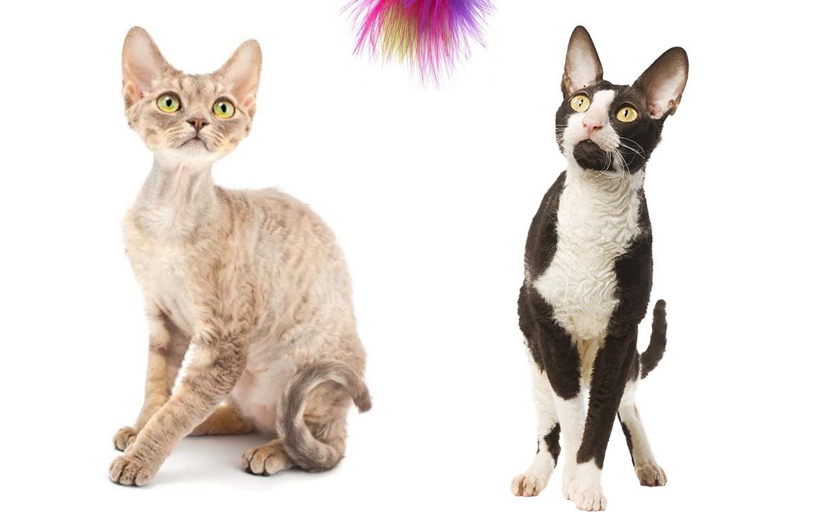 На фото слева – девон-рекс (кремовый), справа – корниш-рекс (черно-белый окрас)