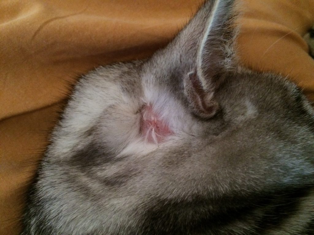 Кот до крови расчёсывает уши и шею из-за эктопаразитов