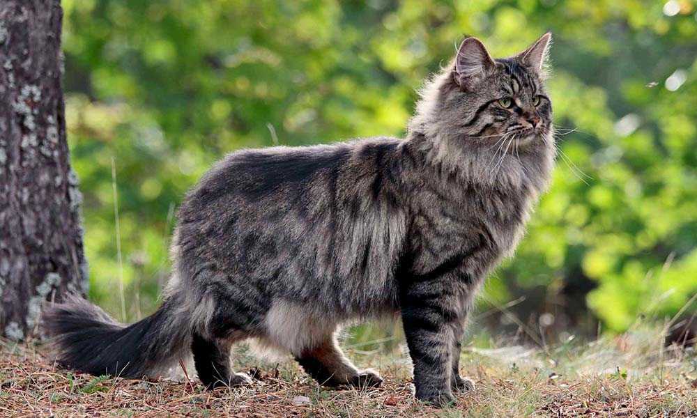 Как следует из названия, эта порода родом из лесов Норвегии в Европе. Погода в Норвегии может быть очень холодной, поэтому у этой кошки очень густая шерсть и длинный хвост, чтобы защитить ее от холода. У них также есть плотный, толстый меховой воротник вокруг шеи, что придает им уникальный и дикий вид.