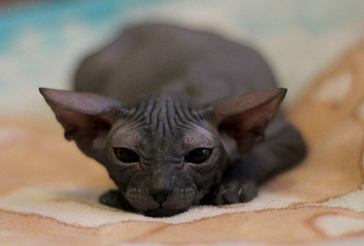 Кстати, так как у этой разновидности сфинксов шерстяной покров практически отсутствует, то на мордахе очень выделяется мимика. В итоге фотографии питомцев будут часто получаться очень забавными.