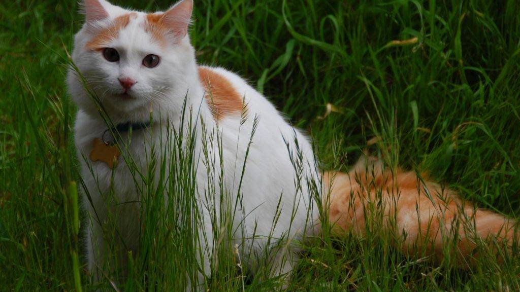 Но официальное описание породы турецкий ван, признанной фелинологами, рисует нам другой окрас. Белый корпус, разделенные полосой пятна на голове, такое же пятно на левой лопатке и полностью окрашенный хвост, на котором различимы от 5 до 9 более ярких колец. Изначально предполагалось, что пятна должны быть каштаново-красными, но сейчас допускаются и другие варианты. На этом фото — кошка ван «европейского» окраса.