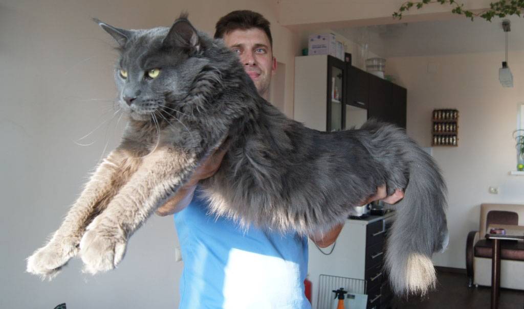 Это одна из самых крупных пород кошек, живущих в наших домах. Самец мейн-кун может весить до 15 кг. Первые такие кошки появились в штате Мэн, поэтому и получили это название.