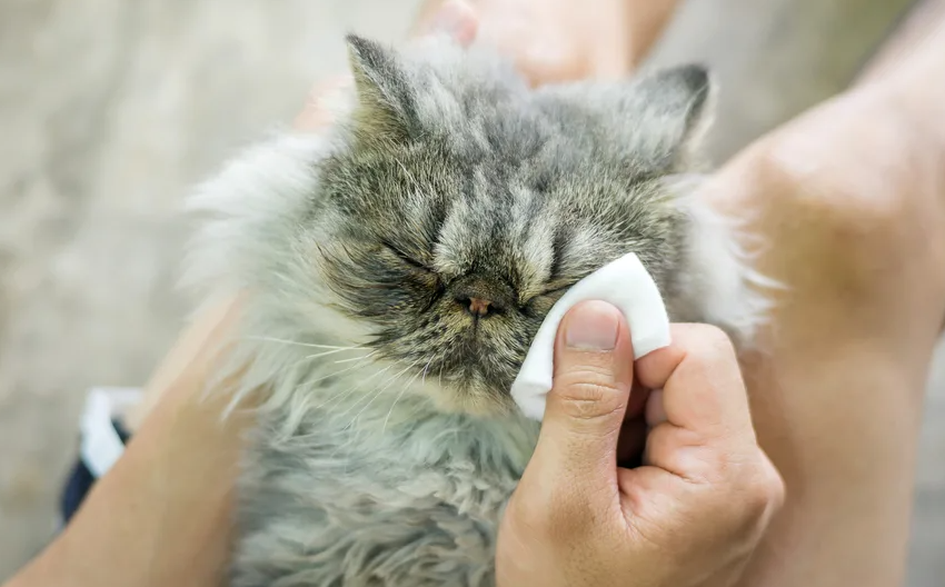 Протирают глазки мягкой тканью или салфеткой. Ветеринары рекомендуют обрабатывать глаза борной кислотой — 2 капли на 1 чайную ложку воды или готовыми каплями.