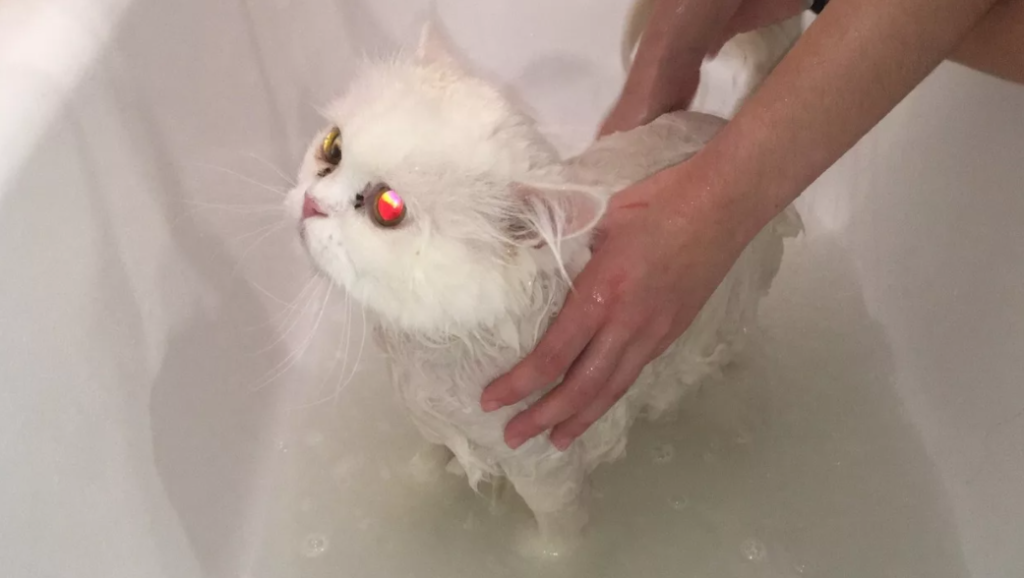 Водные процедуры рекомендовано принимать не чаще одного раза в 3 месяца. Моют животное в низкой емкости, уровень воды — 8-10 см. Моющее средство смывают тщательно, избегая попадания его фрагментов в организм — в процессе самостоятельного ухода питомца за шерстью.