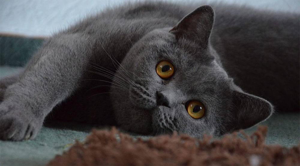 При небольшой длине шерсть британцев достаточно густая. Самый популярный окрас британской кошки – голубой с серебряных отливом. У кошек с таким окрасом глаза, как правило, янтарного цвета. Также часто встречаются полосатая расцветка (табби) и колор-поинт.