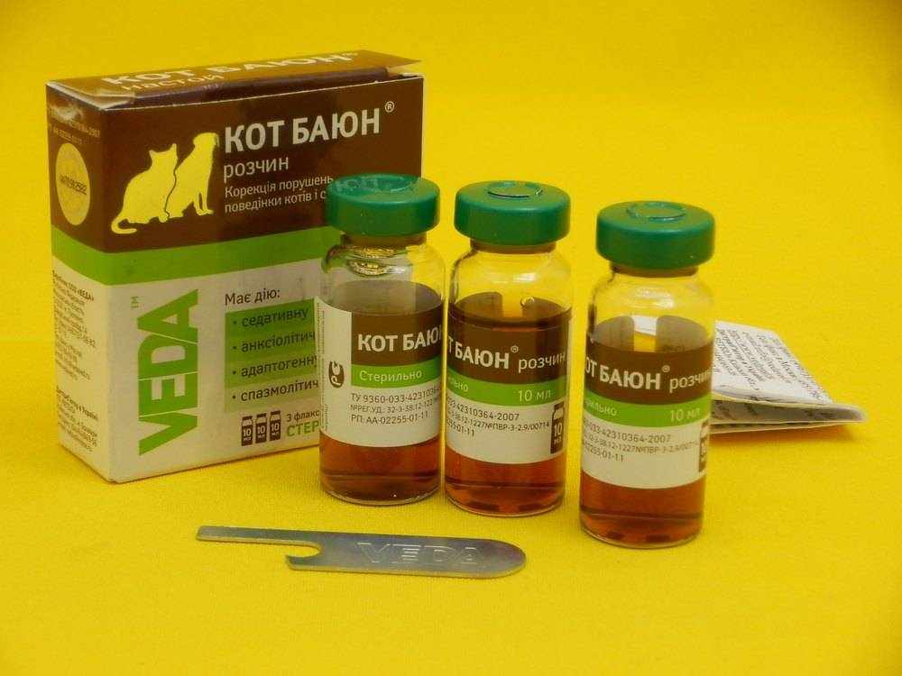 Сегодня в ветеренарных аптеках можно увидеть капли Кот Баюн. Препарат Кот Баюн является настойкой на основе лекарственных трав, которая предназначена для лечения любых нарушений в поведении кошек или собак. В состав лекарственных капель входит множество разных трав, таких как: