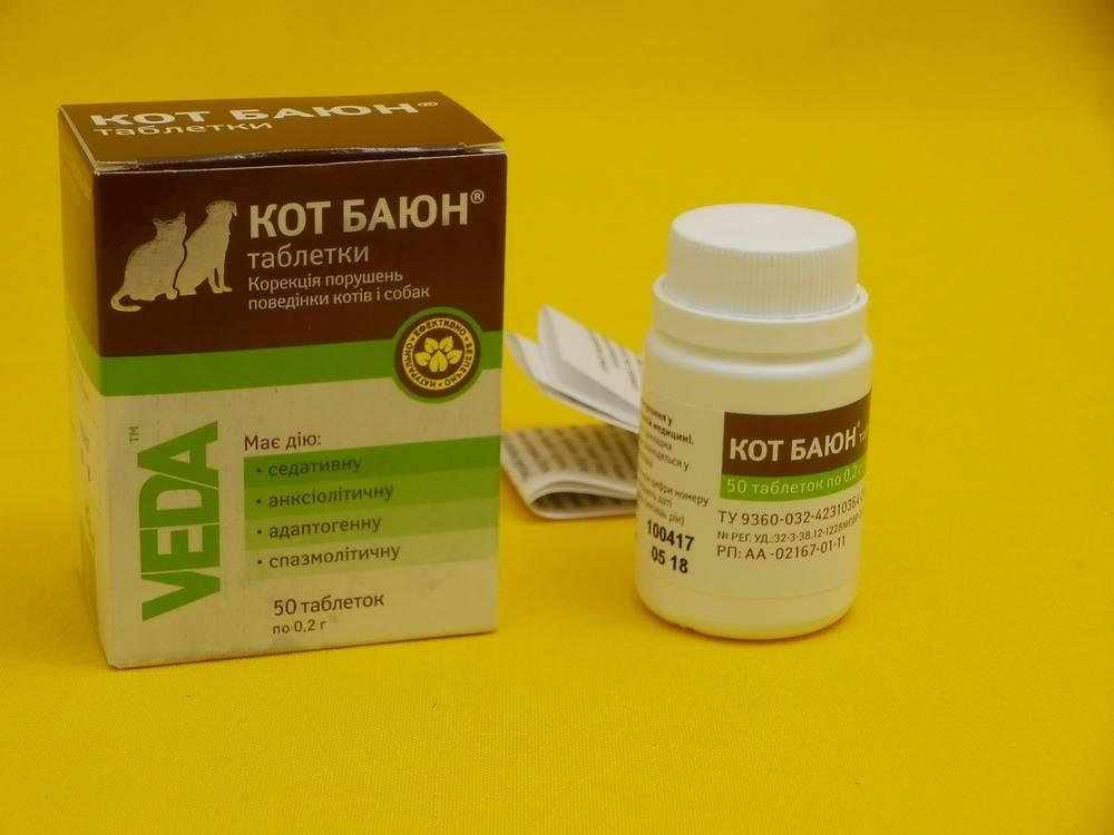 «Кот Баюн» — седативный препарат, который дают кошкам в целях коррекции нежелательного поведения. В рекомендованных дозах он абсолютно безопасен для животного, так как имеет в своем составе только природные компоненты. «Кот Баюн» можно давать беременным кошкам, так как препарат не опасен для эмбрионов. Не вызывает аллергии. «Кот Баюн» обладает седативными, ослабляющими чувство страха и беспокойства, обезболивающими, спазмолитическими свойствами.