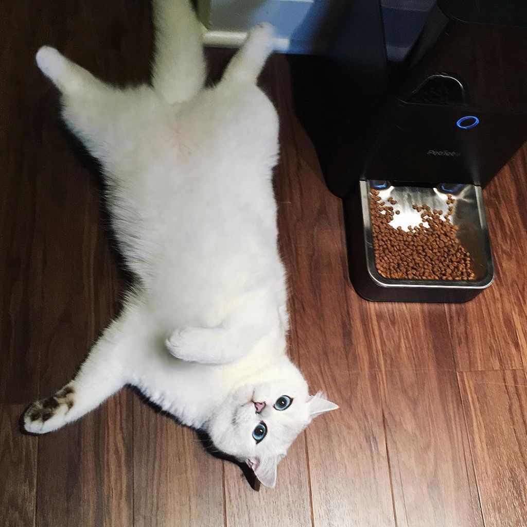Описание кошки Коби никак не напоминает британских короткошерстных. Она имеет белоснежную шубку и невероятной глубины голубые глаза