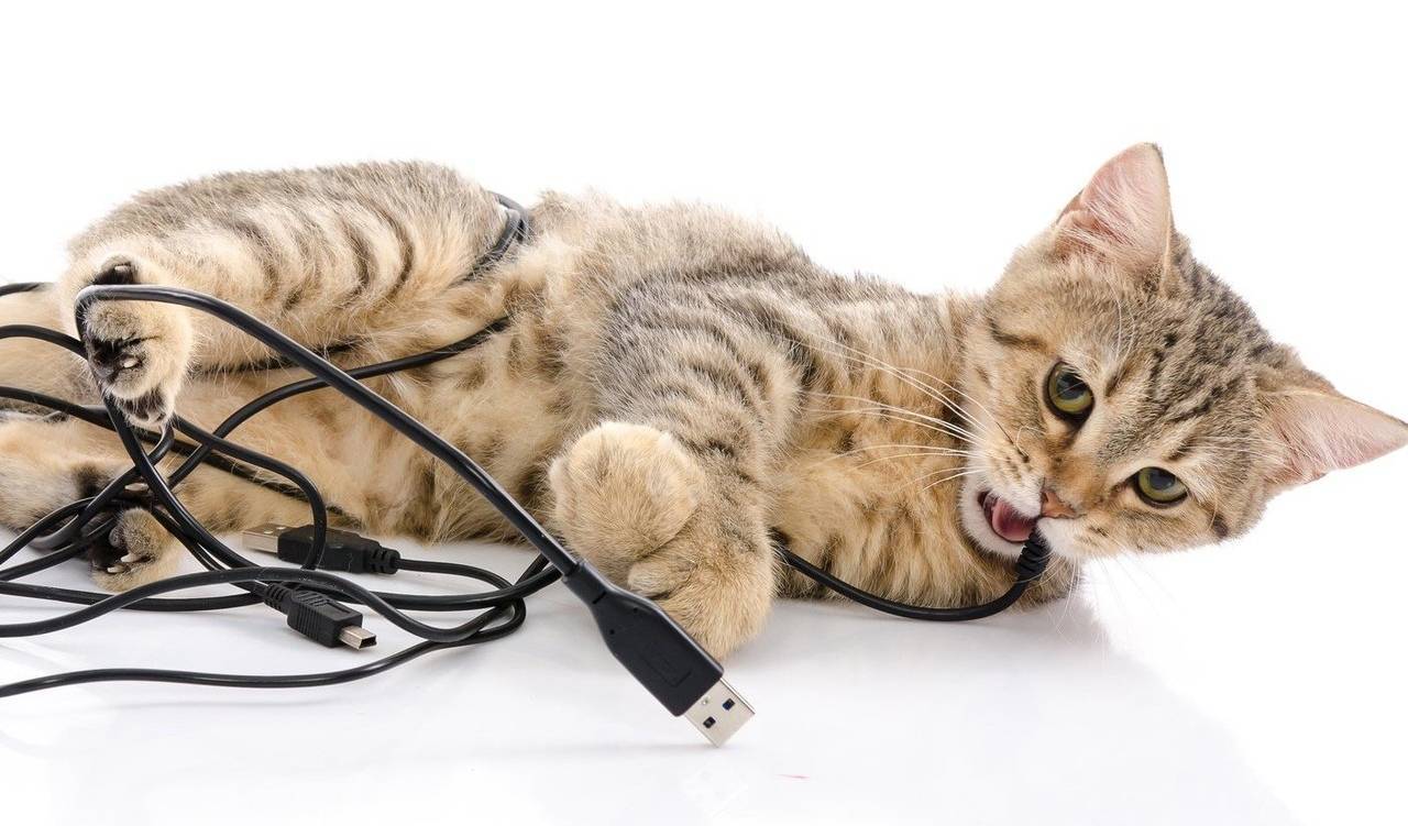 Затем необходимо проверить целостность всех проводов. Нужно помнить, что поврежденный кабель может стать причиной возгорания, а потому его лучше сразу восстановить. После проверки нужно убрать из зоны досягаемости все провода, которые кошка может погрызть, чтобы избежать дальнейших повреждений.