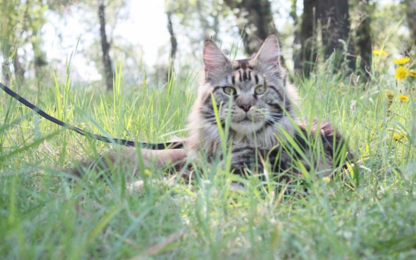 Если кот не приучен к прогулкам, то лучше вести его с поводком, который можно купить в зоомагазине.