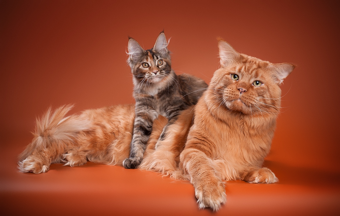 Кошки породы мейн-кун имеют древние корни, и чтобы передавать ген их аборигенного «дикого» окраса и аристократические манеры, заводчикам нужно серьезно постараться.