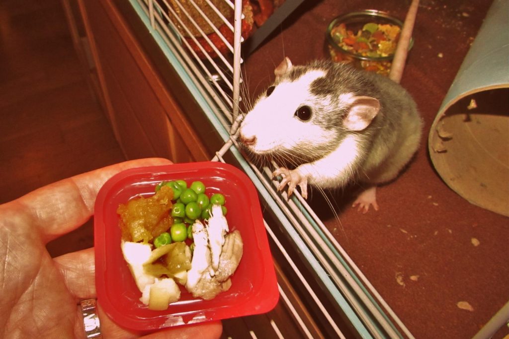 Принято насыпать еду 2 раза в день – утром и вечером. Вечером дают немного побольше, т.к. грызун ведет ночной образ жизни. Если домашняя крыса не съела все сразу, не стоит моментально менять рацион питания. Она сначала выберет, что повкуснее, а потом уже примется за остальное.