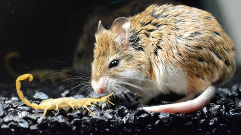 Аризонский древесный скорпион Centruroides является одним из самых ядовитых скорпионов в мире — его яд способен вызвать у человека резкие мышечные судороги, сильную боль и острую дыхательную недостаточность. Однако кузнечиковый хомяк наловчился охотиться и на него.