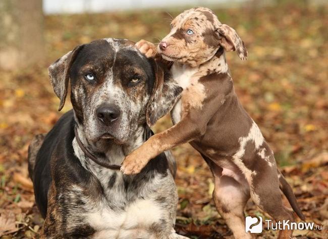 У собак Катахулы допускается гетерохромия — разный окрас радужной оболочки глаз