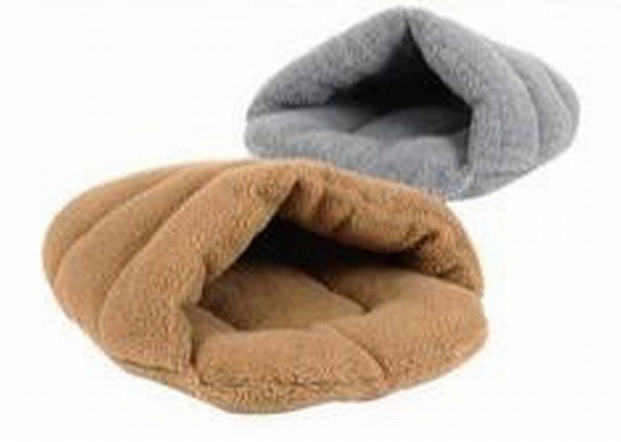 Представляет собой закрытую конструкцию в виде домика, кокона или шалаша. Внутри имеется мягкий наполнитель. Такой лежак дает животному ощущение уединения и безопасности. Отлично подойдет кошке с котятами.