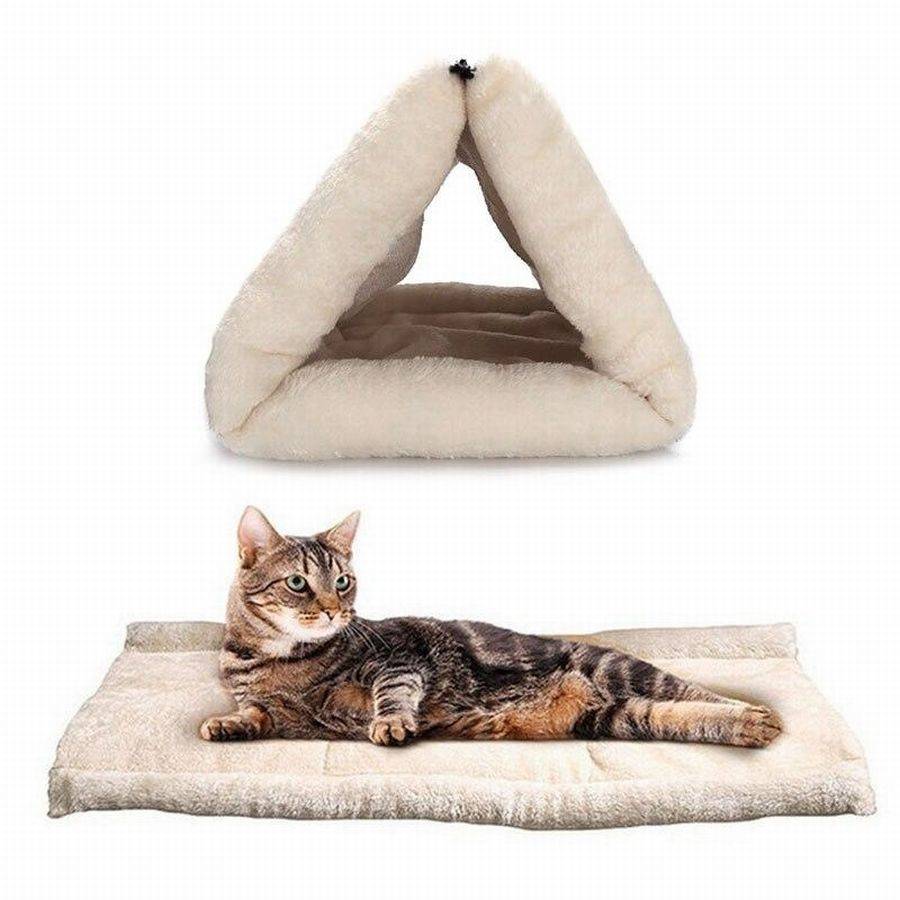 Вот ещё одно предложение: лежанка-трансформер. Может быть и в виде домика (для котиков, которые любят прятаться), и в виде обычного коврика (для котиков, которые любят развалиться).