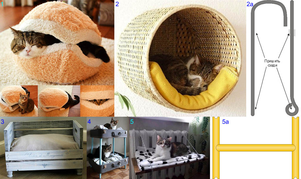 Неограниченная фантазия хозяев позволяет устроить своему любимцу место для отдыха из абсолютно разнообразных материалов. Нужно просто внимательно посмотреть вокруг и, заодно, присмотреться к облюбованным животными местам для сна.