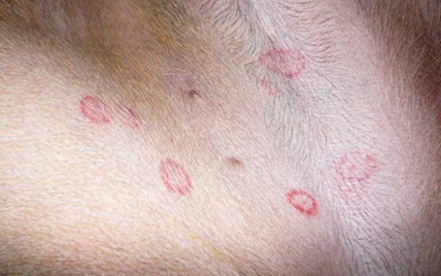 Название заболевание получило из-за характера высыпаний. Они могут быть разных цветов: от буро-красного до розоватого. На месте воспаления выпадает шерсть.