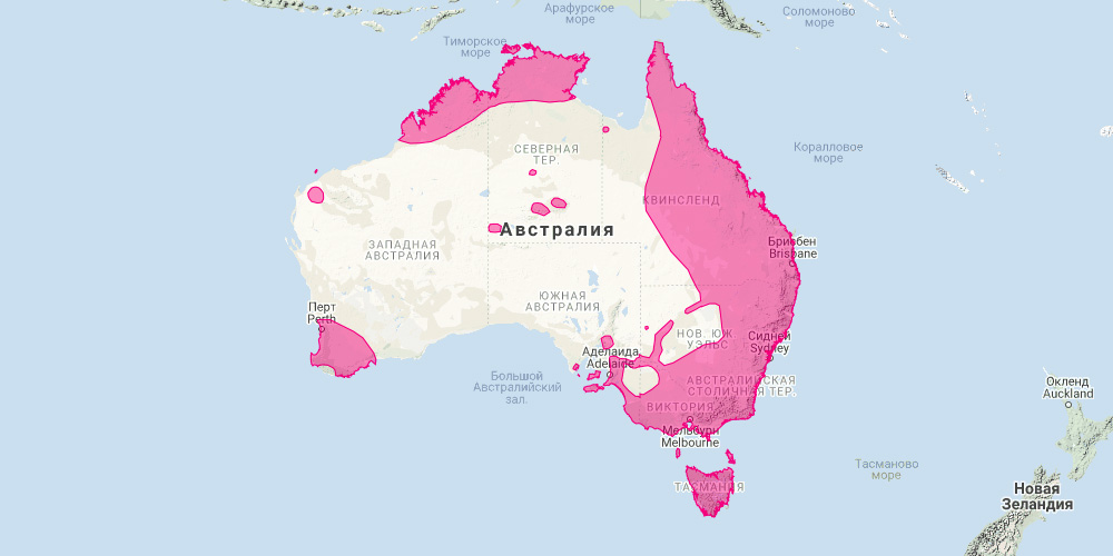 | Обитает в прибрежных районах северо-восточной части Австралии.