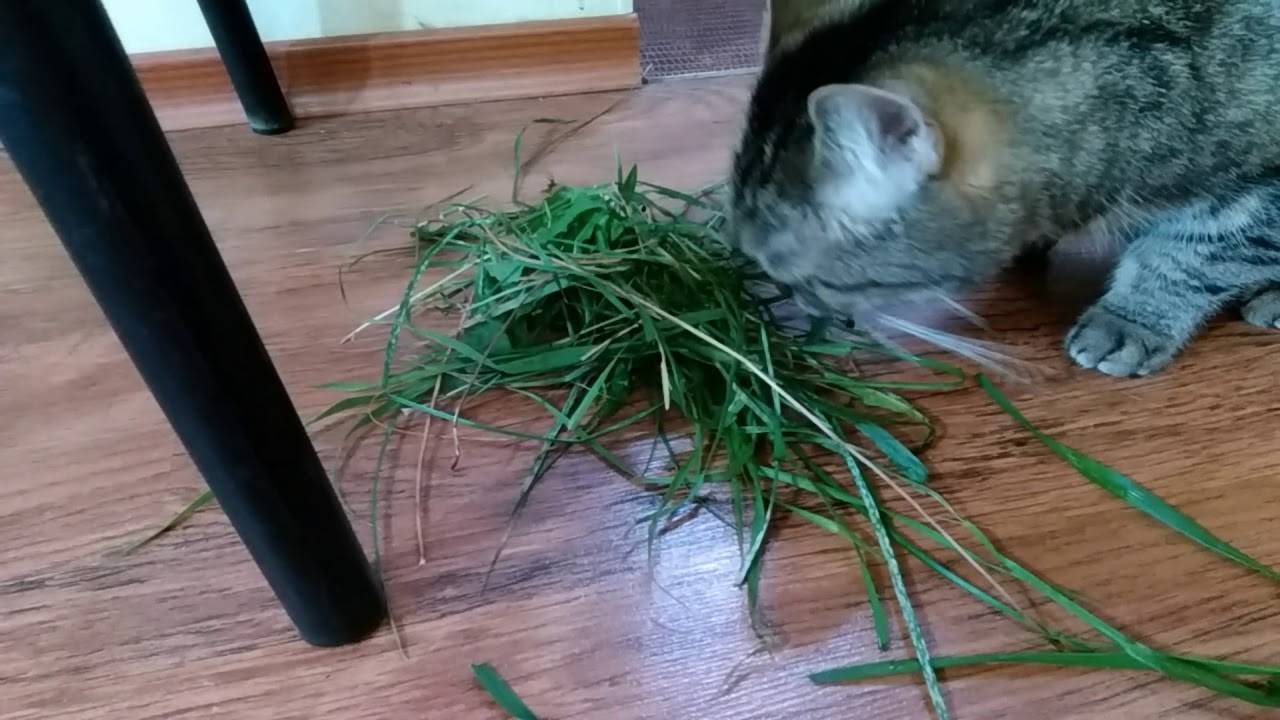 Выведение шерстяных сгустков из желудка кошки при помощи травы