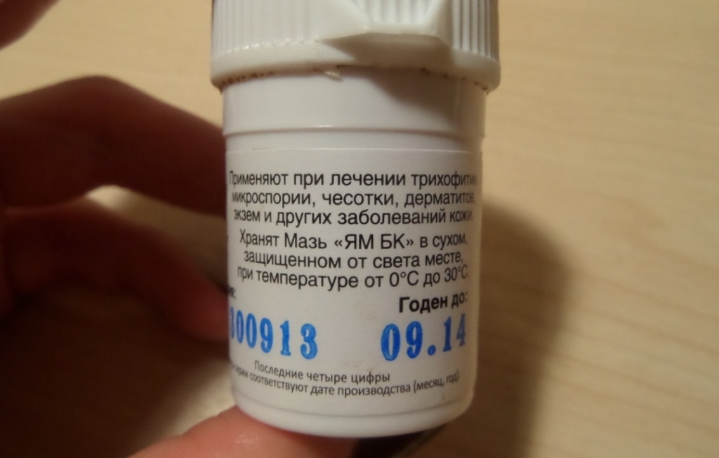 Ям Бк применяют для лечения мокнущего лишая, трихофитии, экземы. Перед нанесением средства лишай обрабатывается йодом