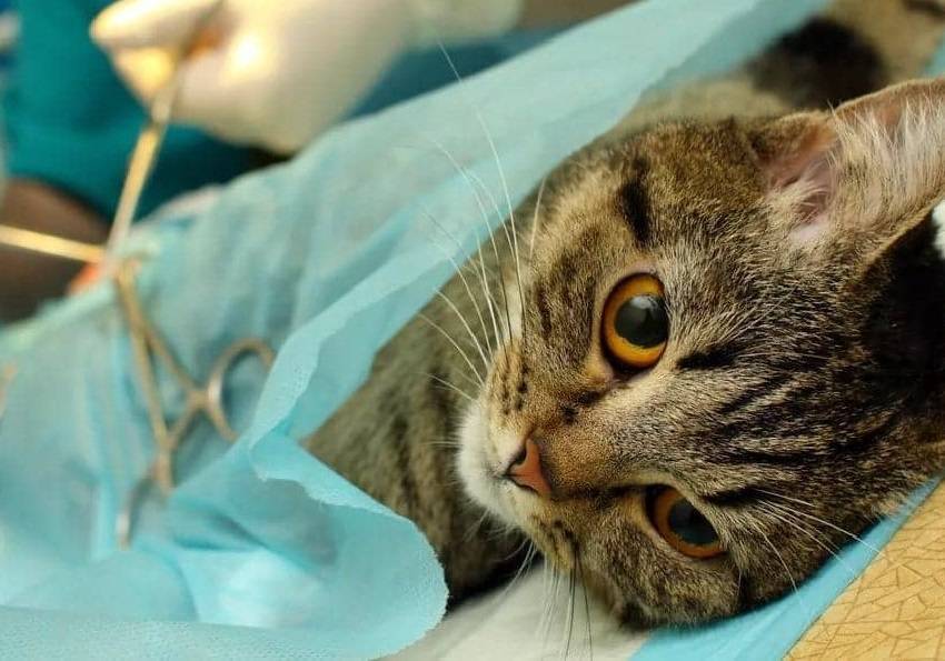 Во время стерилизации животному делается глубокий общий наркоз. В большинстве случаев ветеринарные врачи используют современный безопасный наркоз, который не наносит вреда животному и легко переносится кошками.