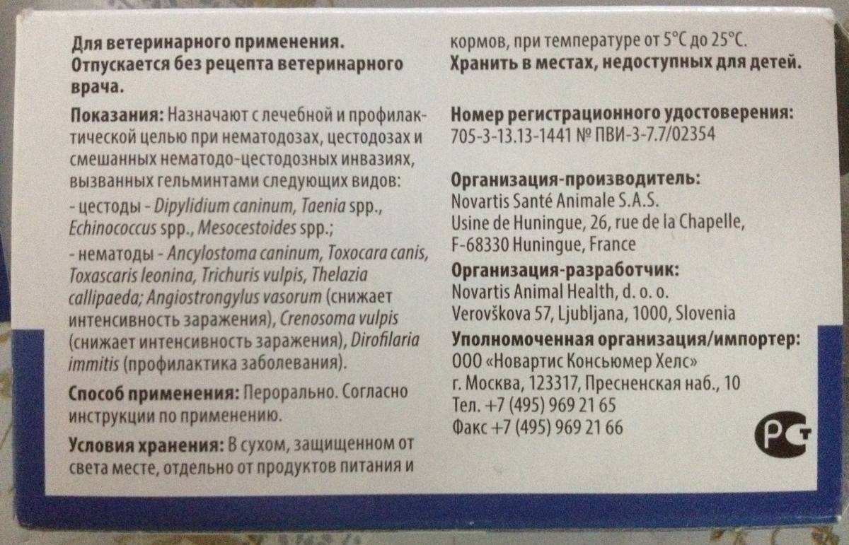 После употребления умирает большинство разновидностей цестод — от Dipylidium caninum до Trichuris vulpis. С целью профилактики дирофиляриоза разрешается давать медикамент с интервалом в 30 дней.