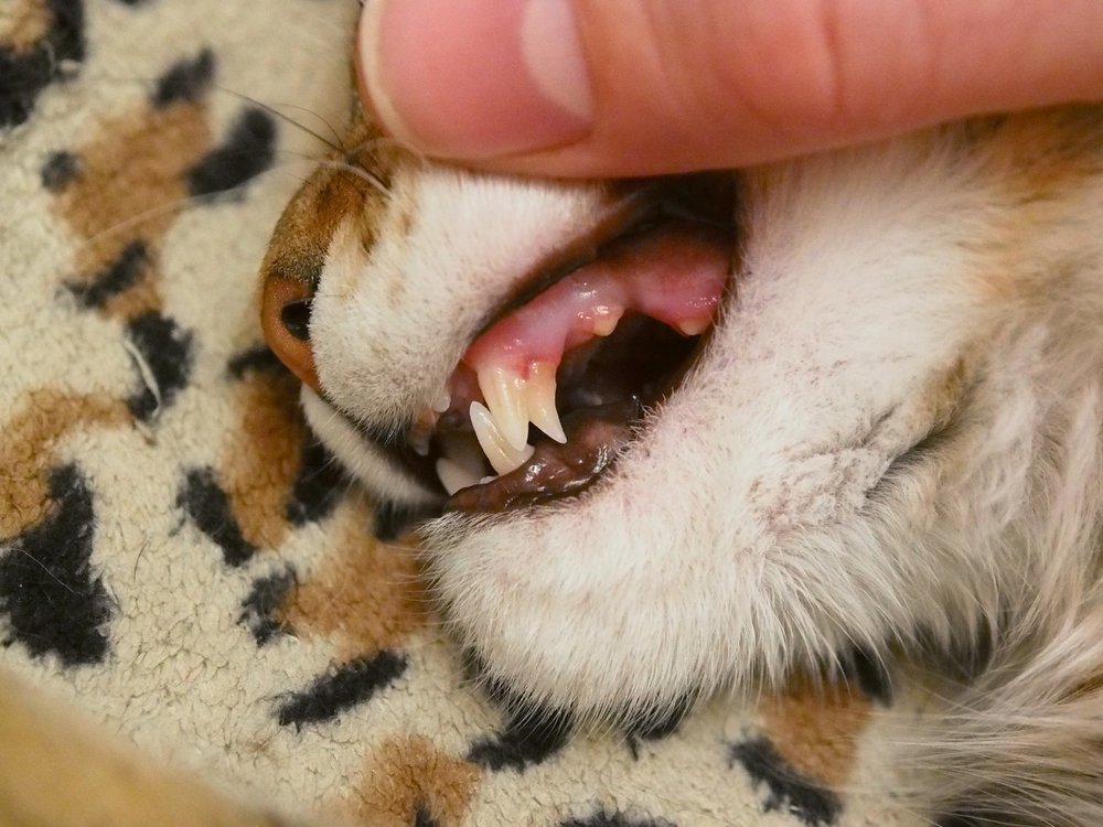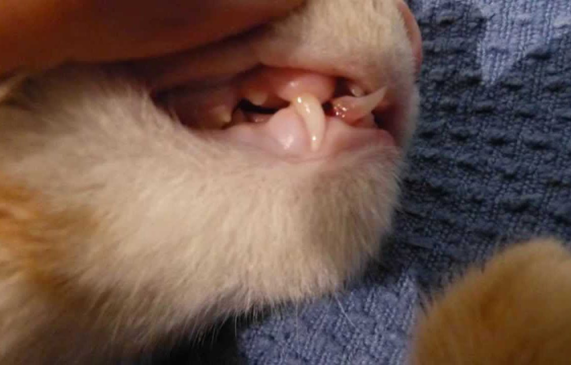 Иногда случается так, что растущий новый зуб пережимает молочный, и котёнок начинает себя плохо чувствовать: «плачет», теряет аппетит.