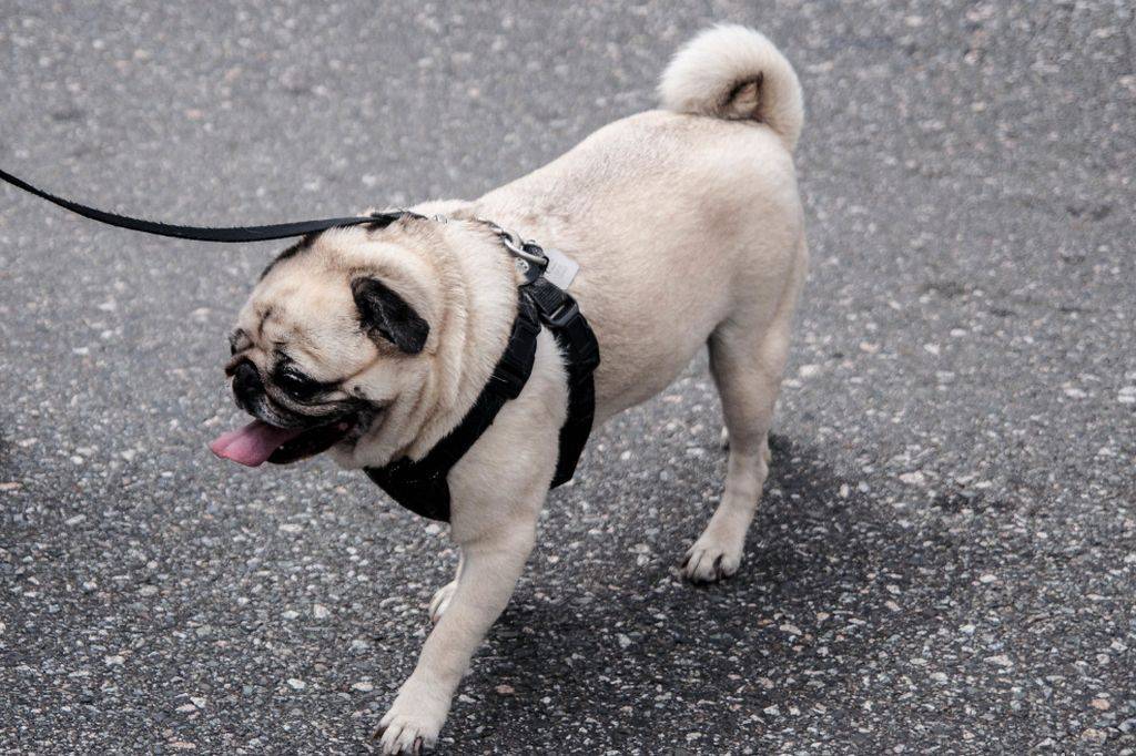 Мопсы, обладающие высоким интеллектом, отлично приучаются к разным по назначению прогулкам.