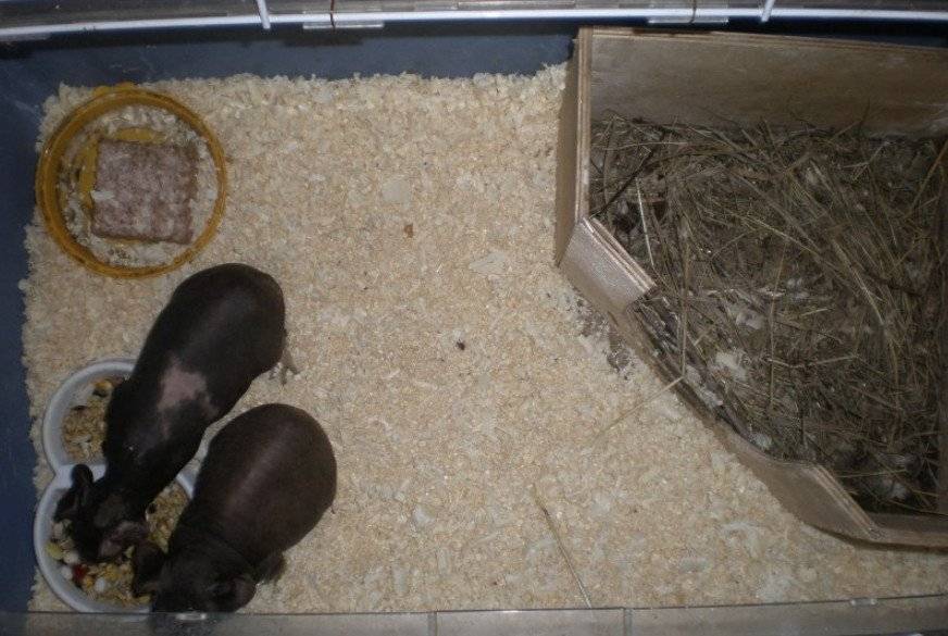 Для таких грызунов не стоит покупать открытую клетку с прутьями. Скорее всего в ней им будет холодно и не комфортно. Обычно лысые морские свинки содержат в террариумах с прозрачными боковыми стенками из пластика.