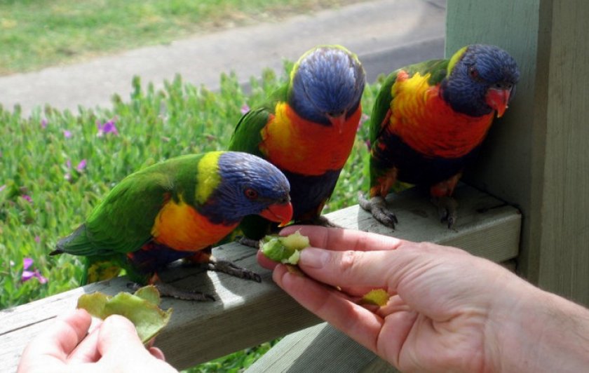 Птицы с осторожностью пробуют что-нибудь незнакомое, поэтому нужно набраться терпения, дождавшись, пока попугай попытается откусить от плода кусочек. Обычно пернатые любят грызть фрукты от большого ломтика и откусывать большие кусочки