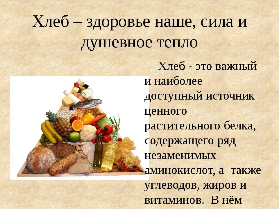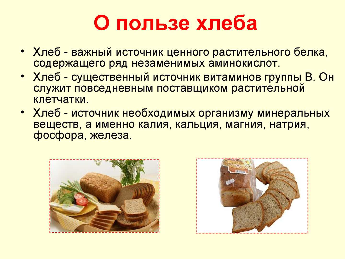 Белый хлеб имеет репутацию нездоровой пищи из всех видов хлеба. Зерно, используемое для приготовления хлеба, состоит из отрубей, зародышей и эндосперма, но именно отруби и зародыши содержат больше всего питательных веществ. Чтобы сделать белую муку, удаляют отруби и зародыши, поэтому белый хлеб считается наименее питательным из всех видов хлеба. Однако в некоторых сортах белого хлеба содержатся витамины и минералы, а также дополнительный кальций и клетчатка.