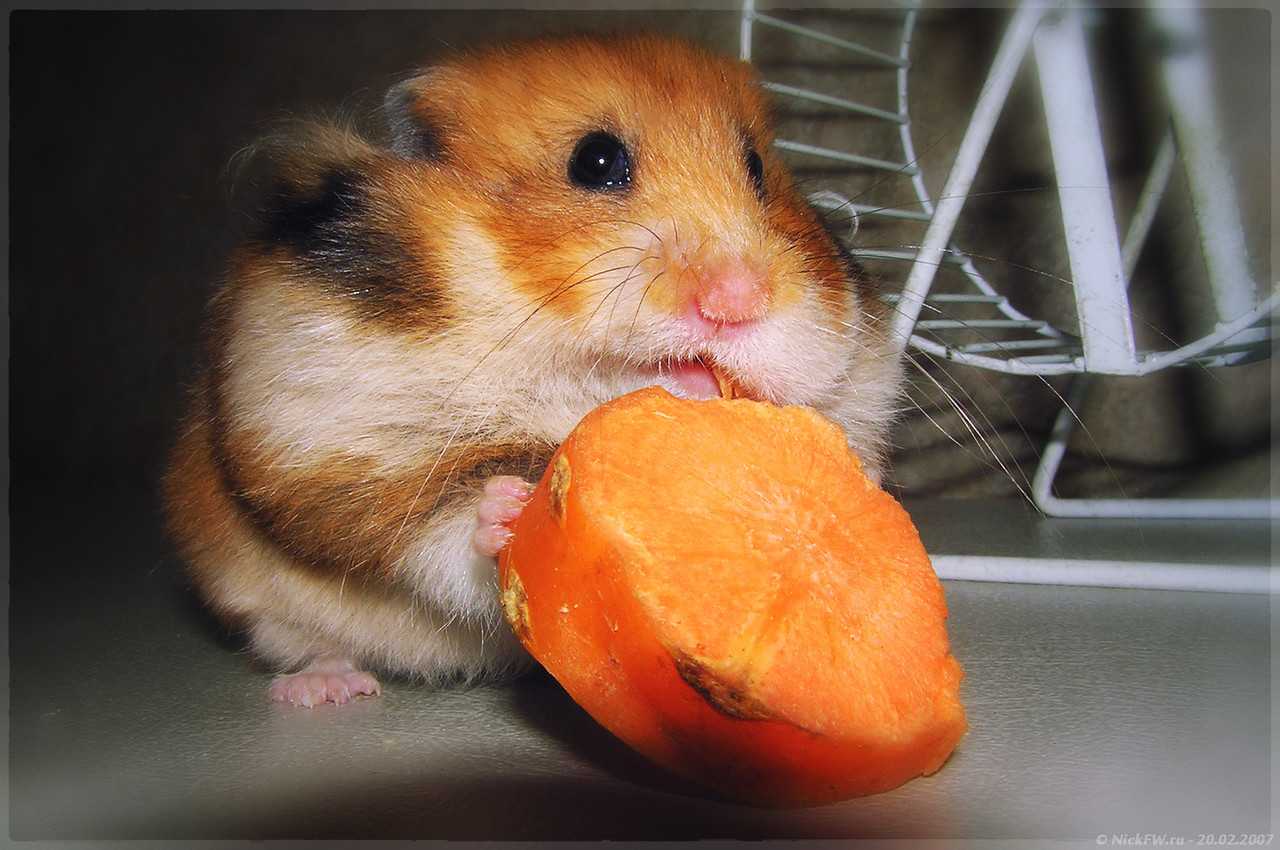 Основу рациона хомячков должна составлять твердая растительная пища: