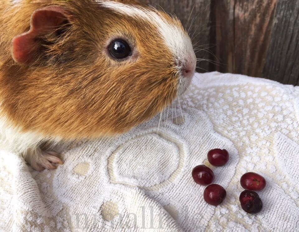 Вишня или черешня – одно из самих любимых угощений для морских свинок. В ягодах много антиоксидантов, витамина С и бета-каротина, благотворно влияющих на организм грызуна. Кроме того, они оказывают противовоспалительный эффект, содержат железо, кальций, цинк и фосфор.