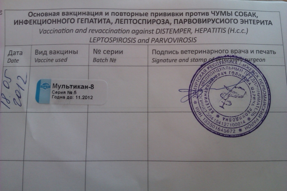 Иммунитет после вакцинации Мультиканом-8 у собак сохраняется до 15 месяцев.