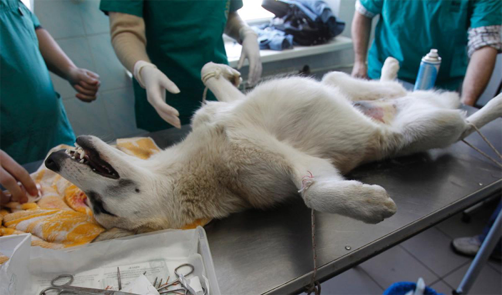 За 10-12 часов до кастрации собаку перестают кормить, за 4-6 часов – поить.